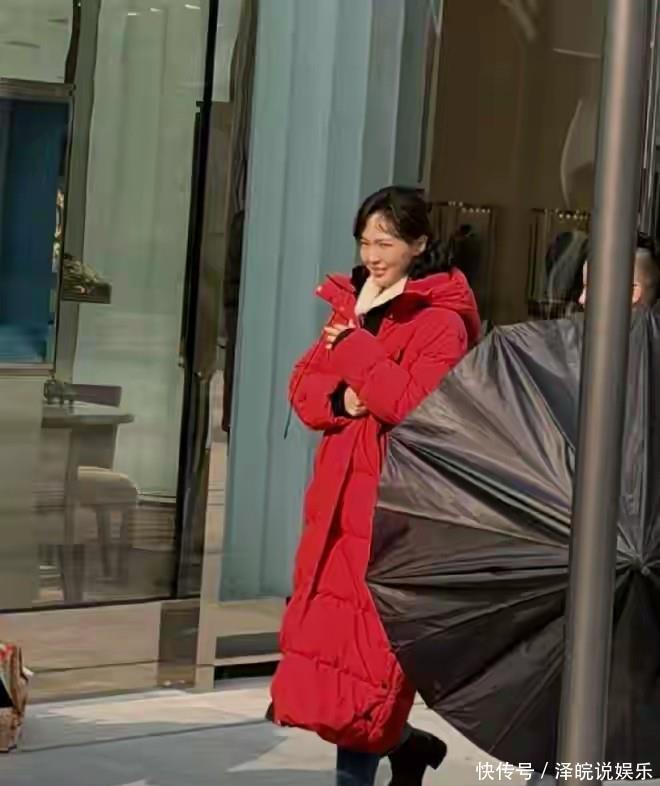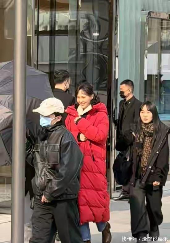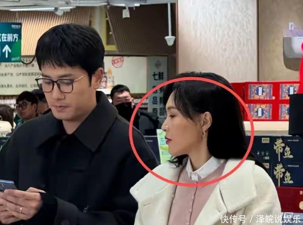 看着还挺减龄,可没了妆容加持,她的肤色看着有点暗沉,眼角也能看出淡淡的纹路,脸颊还有点轻微的松弛,整个人少了平时红毯上的光彩,多了几分烟火气。旁边的彭冠英穿着深色外套,头发梳得很整齐,看着成熟又稳重,那股子人夫感扑面而来,两人站在一起,